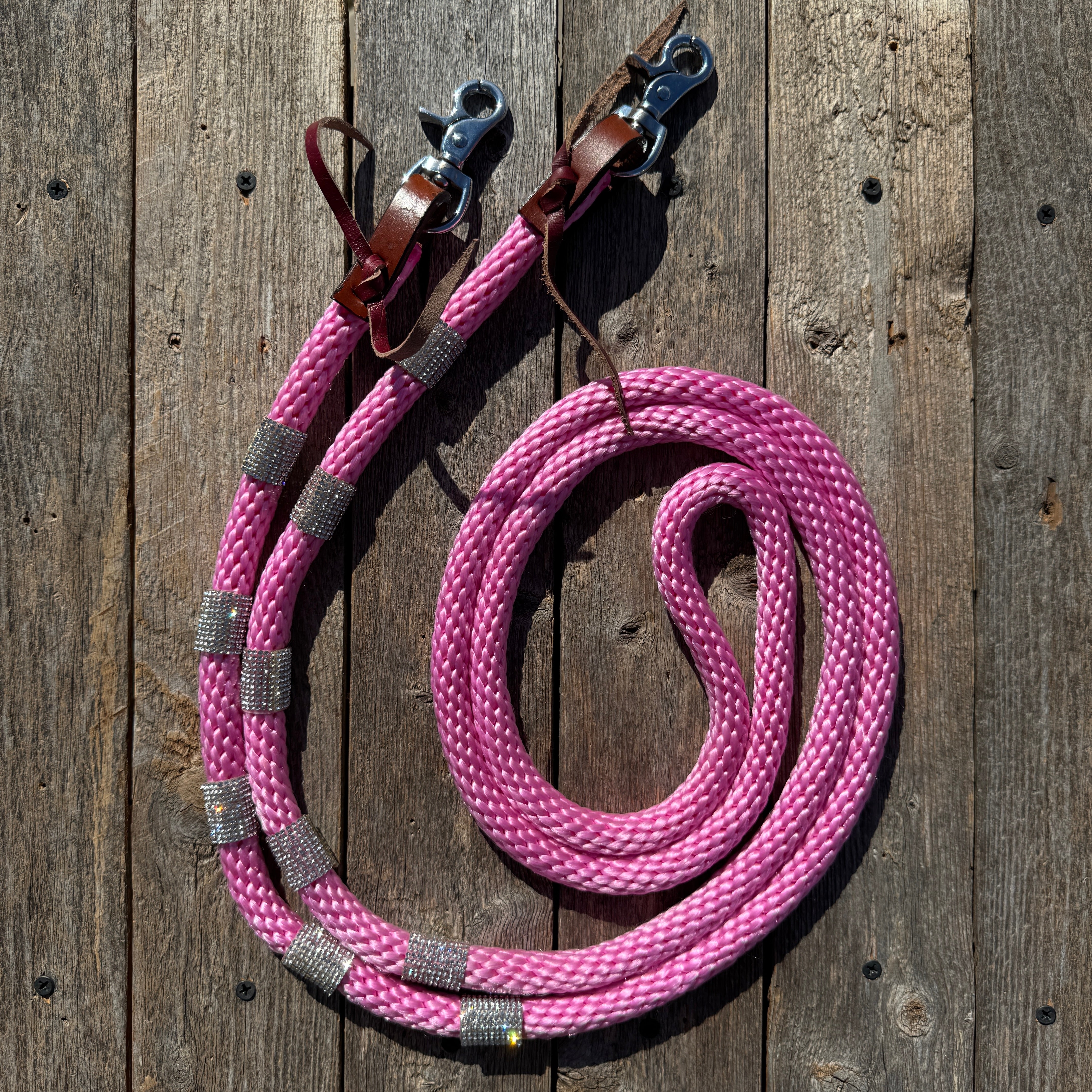 Pink Nylon Barrel Racing Reins with Rhinestones #BNR104