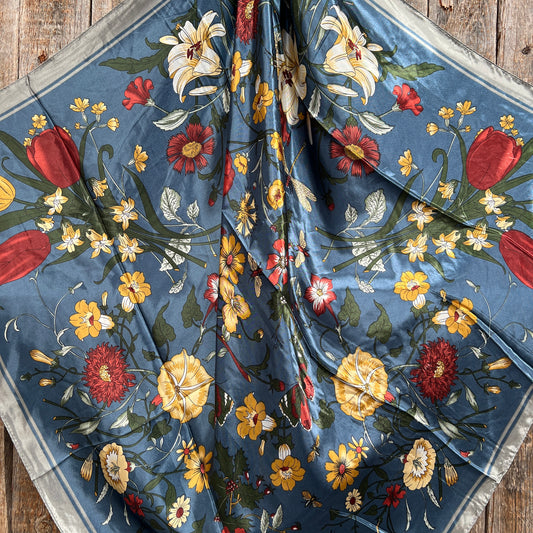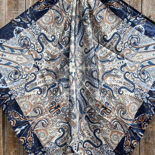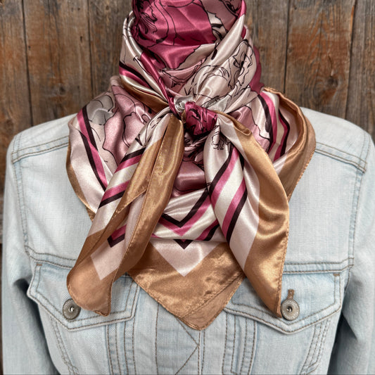 35X35" Blue and Pink Roses Wild Rag / Scarf WR1005