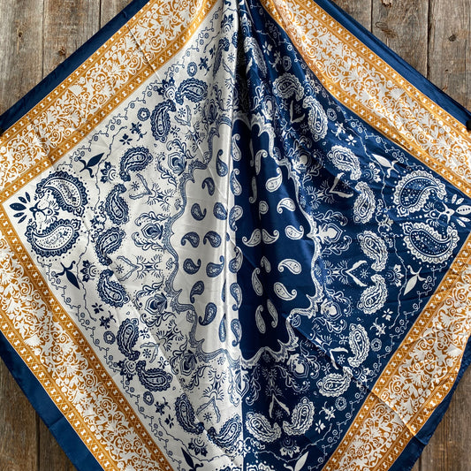 35X35" Blue & Gold Clovers Wild Rag / Scarf WR3171