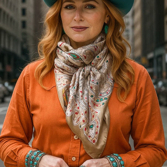 35X35" Burnt Orange & Tan Wild Rag / Scarf WR2179