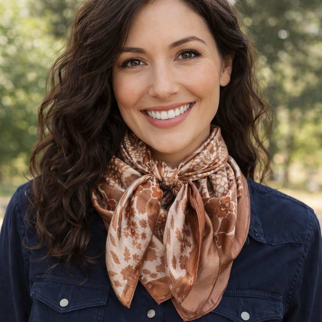 35X35" Cream and Brown Floral Wild Rag / Scarf WR3352