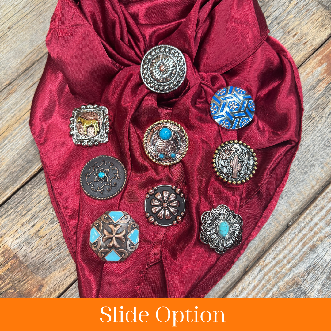 35X35" Solid Burgundy Wild Rag / Scarf WRS14 - Western Concho Wild Rag Slides - Assorted