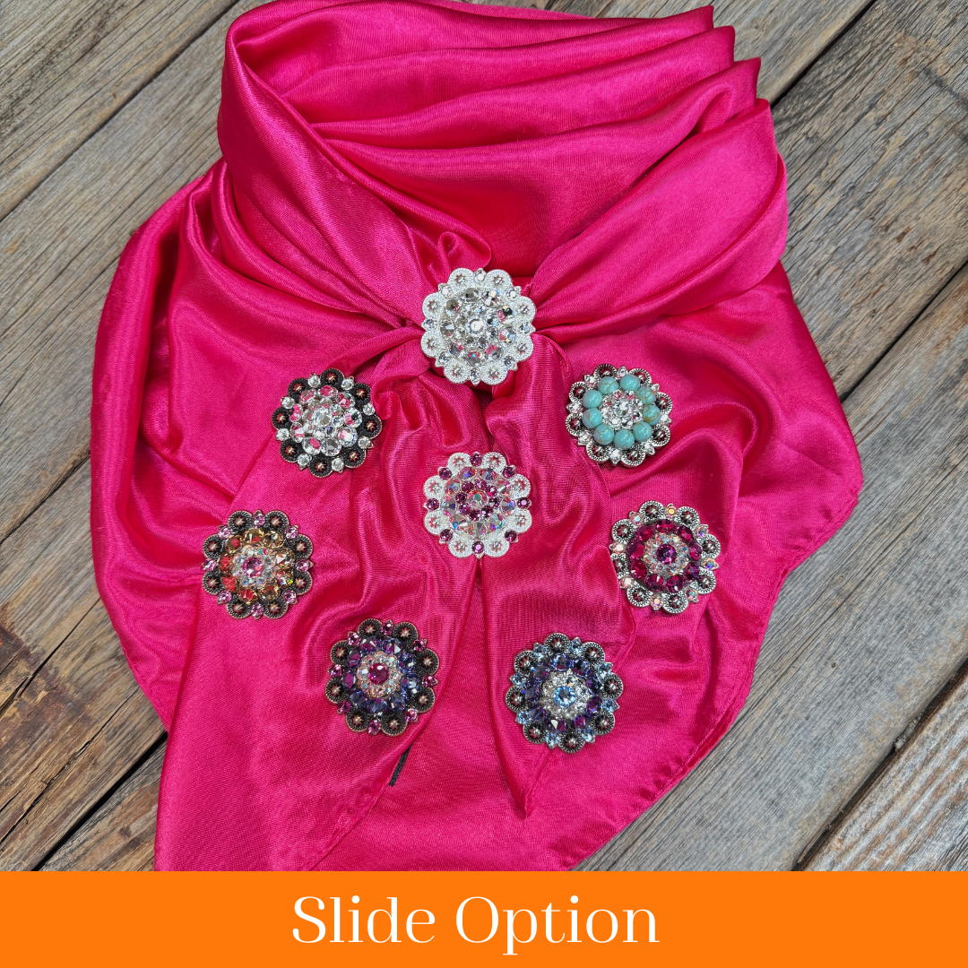 35X35" Solid Hot Pink Wild Rag / Scarf WRS25 - Crystal Concho Wild Rag Slides - Assorted