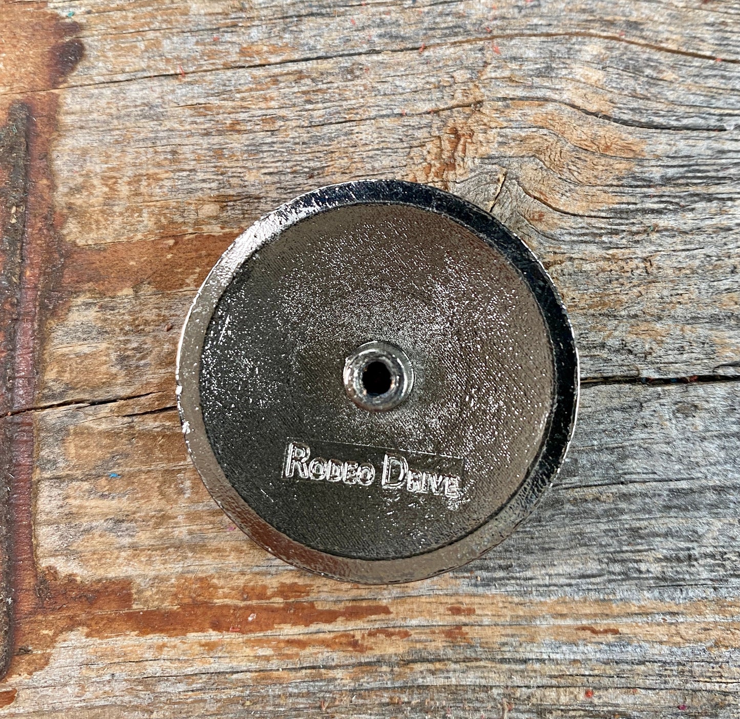 Antique silver western concho with a round shape. Decorated with a raised star and copper rope. This measures at 1".