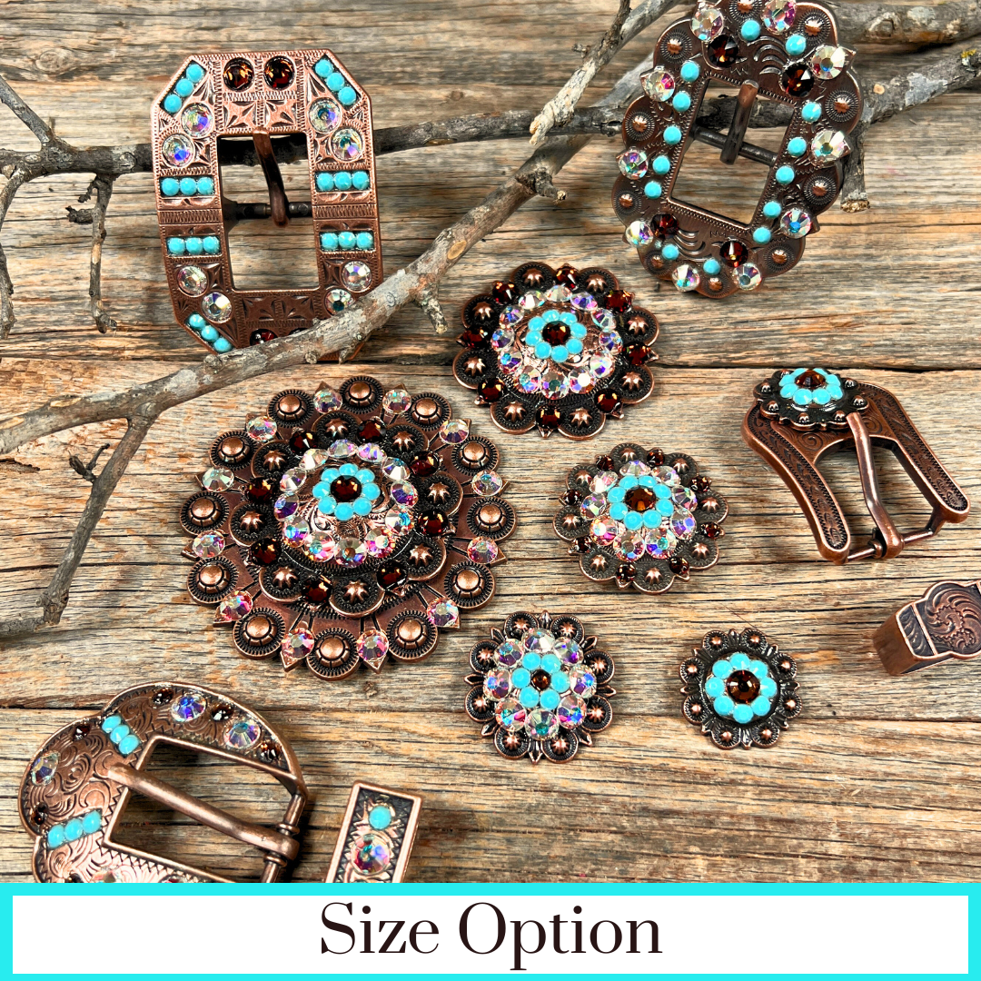 Copper Topaz - Turquoise - AB - Crystal Conchos Sizes from 1"-3" and Buckles