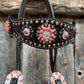 Dark Oil Floral Copper Dot Copper and Coral Browband / Breastcollar Tack Set #BBBC547