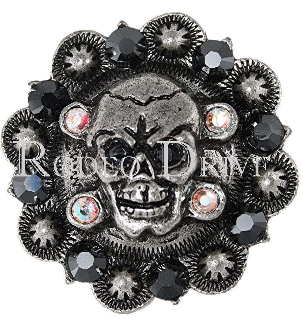 Jet & AB Antique Silver 1.75" Skull European Crystal Concho