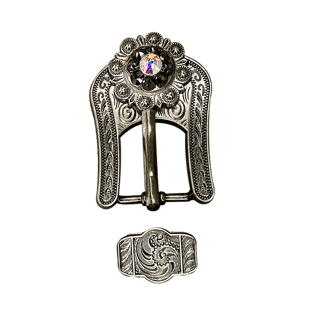 Antique Silver buckle adaptor decorated with a small Jet/AB crystal concho.