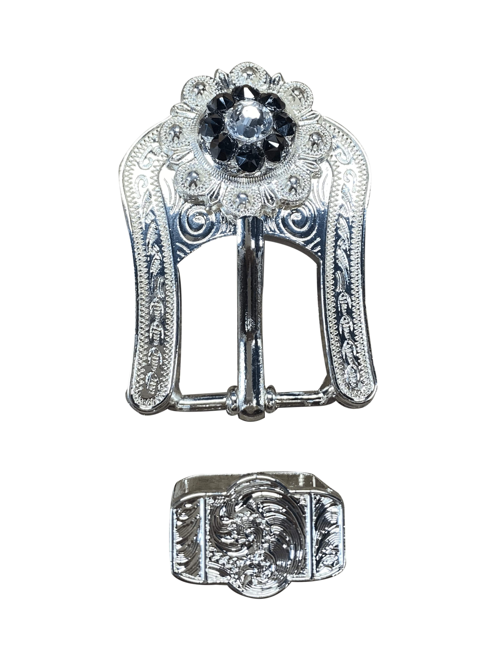 Bright Silver buckle adaptor decorated with a small Jet/Clear crystal concho.