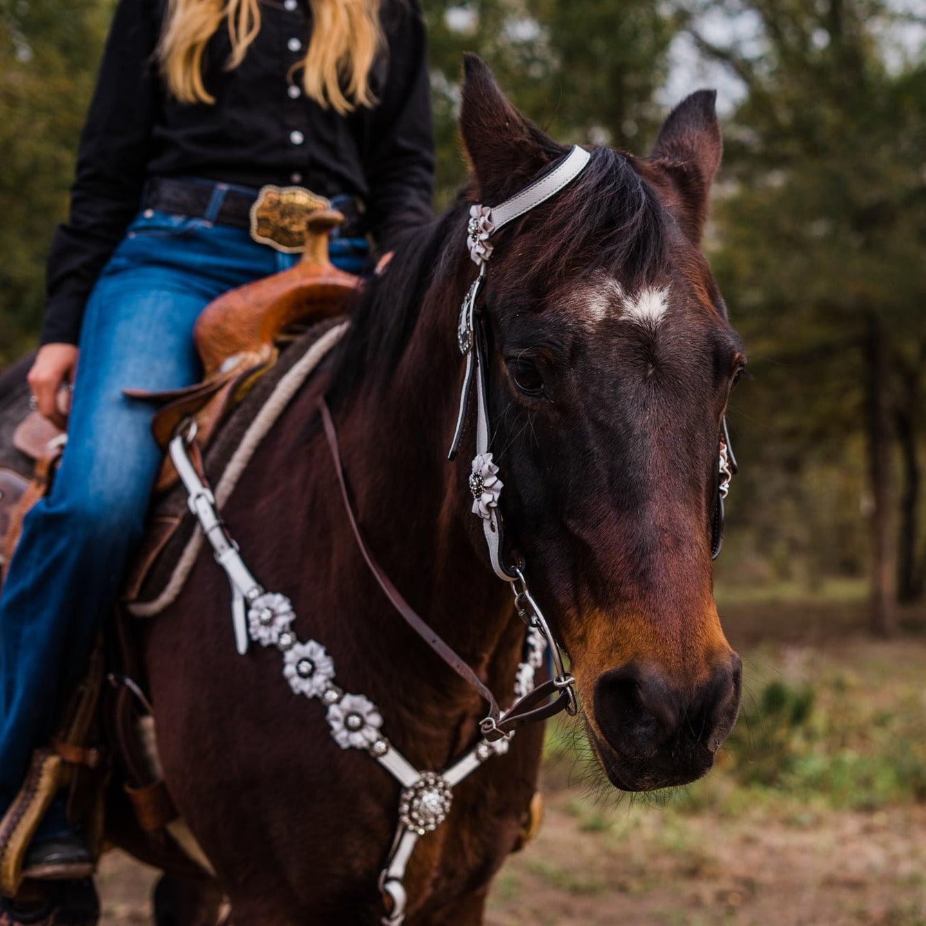 White Floral One Ear & Breastcollar Tack Set #OEBC440